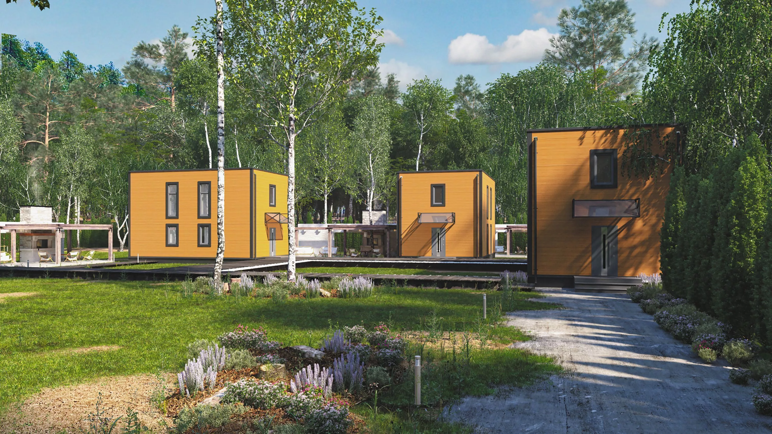 - Доступная стоимость — расходы на реализацию проекта загородного модульного здания почти в 2 раза ниже, чем сооружений из кирпича или газобетонных блоков аналогичных размеров и этажности.